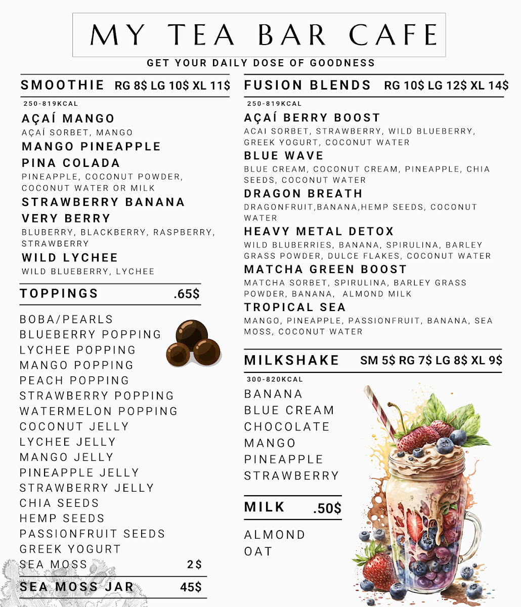 My Tea Bar Menu